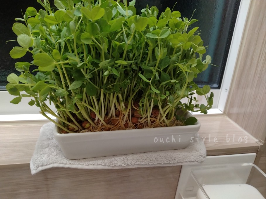 豆苗も伸びてきた。